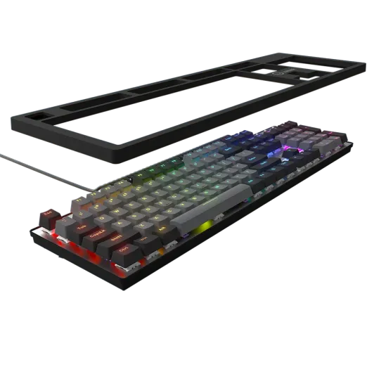 ACEASTĂ TASTATURĂ MECANICĂ UNICĂ POATE SĂ-ȘI SCHIMBE FORMA DIN CLASIC ÎN CORP DE SCHELET ȘI ESTE CONSTRUITĂ PE O BAZĂ DURABILĂ DE ALUMINIU.