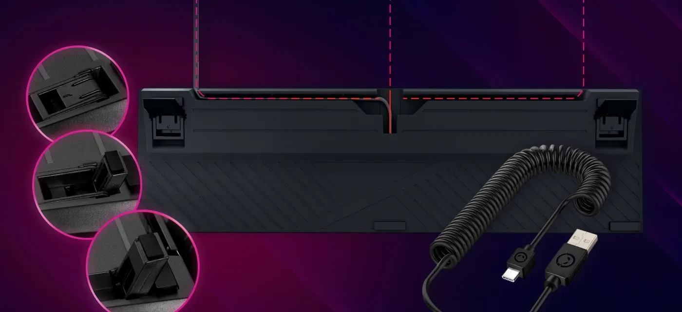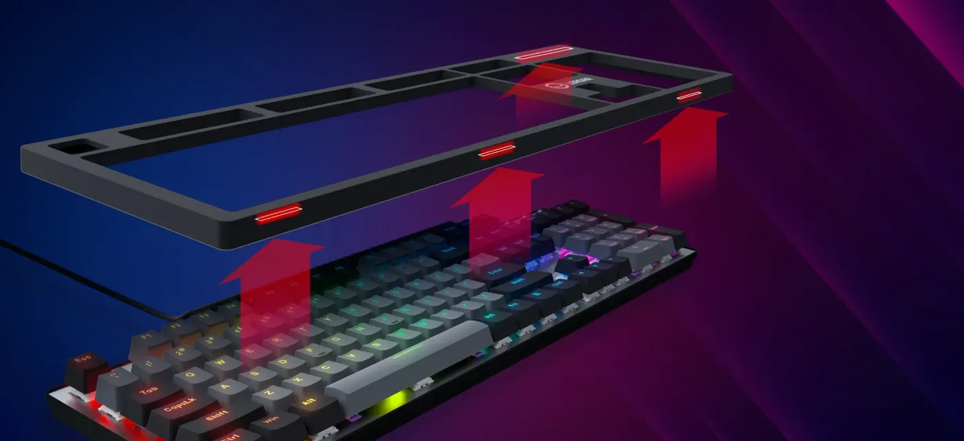 Azar 514 are o caracteristică unică: capacul superior magnetic poate fi îndepărtat, transformându-l dintr-o tastatură clasică într-un design de corp de schelet. Totul este construit pe o bază solidă de aluminiu, asigurând o durabilitate și stabilitate de lungă durată.